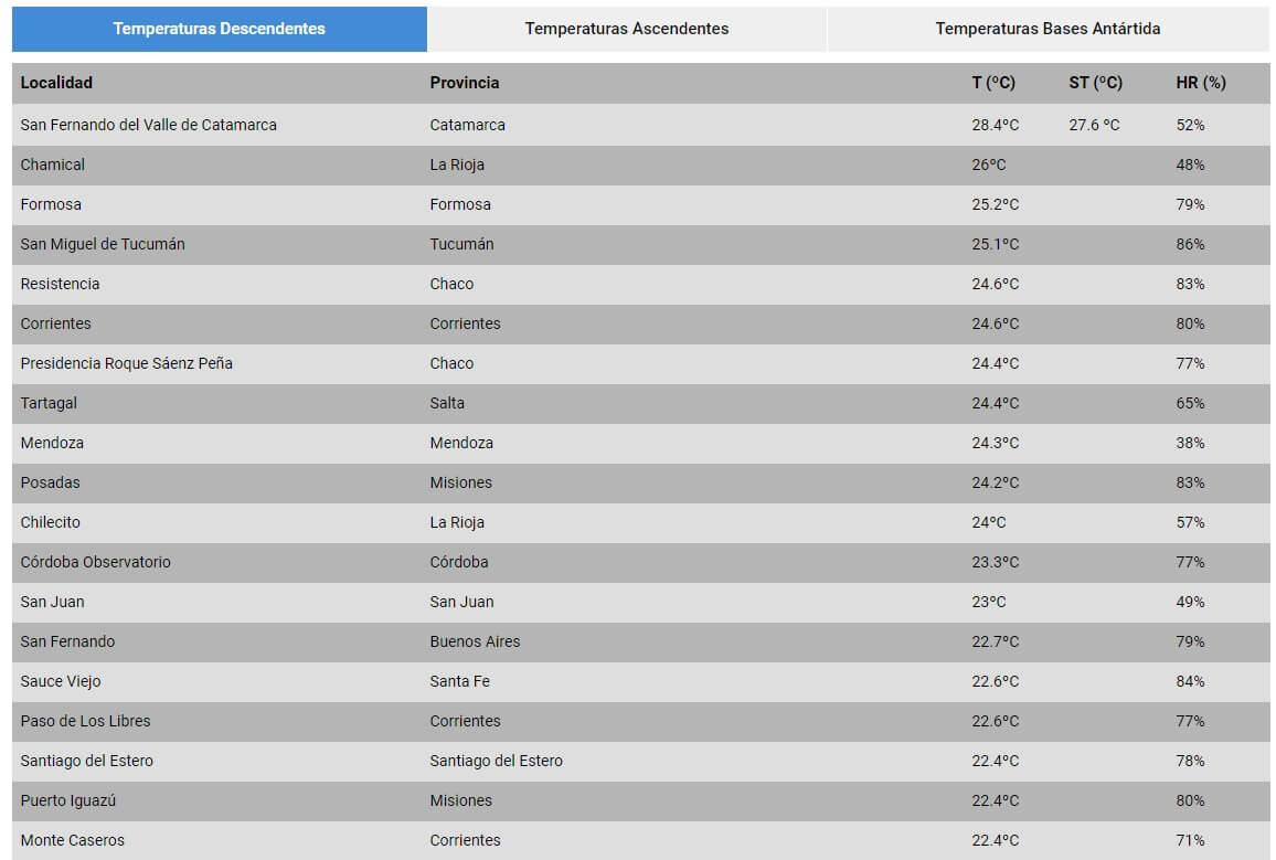 “Continuarán manteniéndose elevadas las temperaturas en la región, donde se esperan valores de temperatura mínima entre 20°C y 27°C y máximas entre 34°C y 42°C“, detalló el SMN.