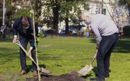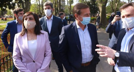 Los funcionarios se reunieron en la plaza Arenales, acompañados de representantes de bodegas y comerciantes relacionadas a la industria de Mendoza, Salta y San Juan, con los que recorrieron la zona y plantaron una vid.