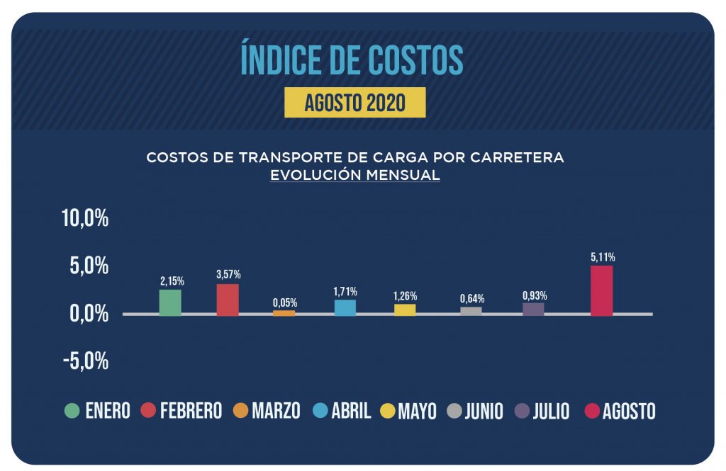 Según el Departamento de Estudios Económicos y Costos de la Federación Argentina de Entidades Empresarias del Autotransporte de Cargas (FADEEAC), el mes de agosto registró un aumento del 5,11% para el sector, marcando el aumento mensual más alto en lo que va del año.