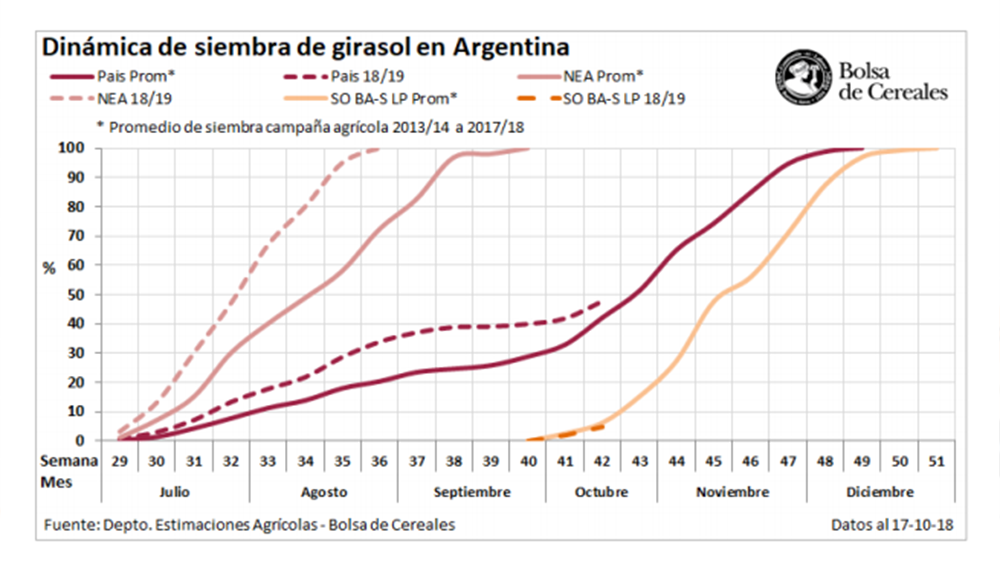 MHa proyectadas para la actual campaña. La siembra de girasol progresa sobre el centro y sur del área agrícola nacional, alcanzando el 47,8 % de las 1.900.000 hectáreas proyectadas para la campaña en curso.