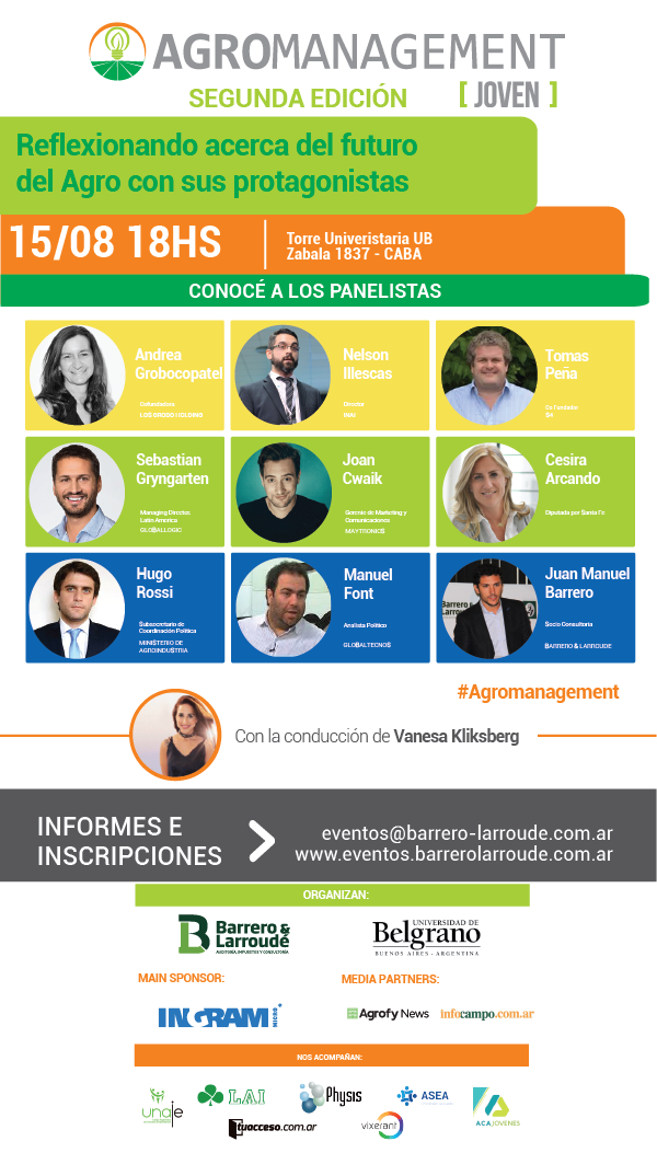 Orientado a jóvenes empresarios, estudiantes, mandos medios y asesores de empresas agropecuarias que intervienen en la gestión de los agronegocios, Agromanagement Jóven es un espacio para re-valorizar la profesionalización de los procesos de producción y administración de las empresas agropecuarias.