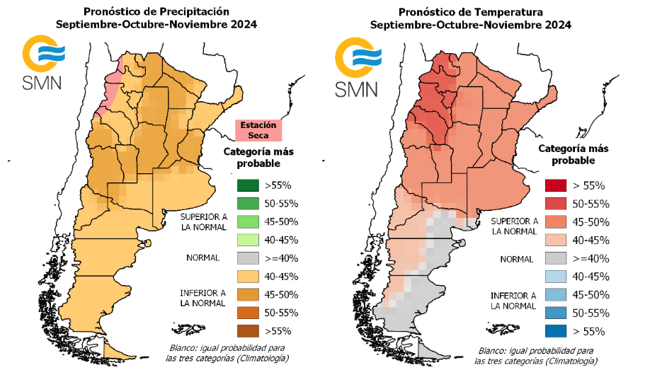 El Servicio Meteorológico Nacional (SMN) publicó su pronóstico climático trimestral para el período septiembre-noviembre y lo que se observa es un escenario combinado de altas temperaturas con escasas lluvias.