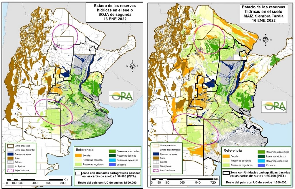 “Las condiciones de humedad en el suelo deficitarias para maíz no muestran mejoras con respecto a la semana pasada, sino que, por el contrario, las altas temperaturas contribuyeron a secar un poco más aquellas áreas que no se hallaban en sequía”, destaca la ORA