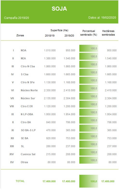 Pese a este escenario, un 97% de área implantada actualmente cuenta con una condición hídrica entre óptimo y adecuada, y permite mantener la proyección de producción de 53,1 MTn sin descartar futuros incrementos dependiendo de las condiciones agroclimáticas de las próximas semanas.