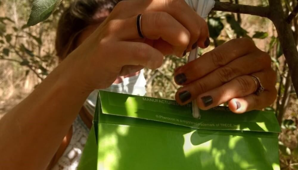 Colocaron trampas con feromonas en La Plata para detectar una polilla que daña frutas y flores