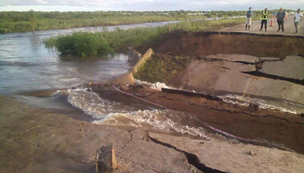 Video: por las inundaciones, se desmoronó un tramo de la ruta provincial N°1 de Santa Fe
