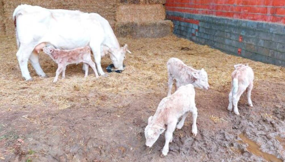 En vísperas de Navidad, una vaca tuvo cuatrillizos en forma natural y están todos vivos