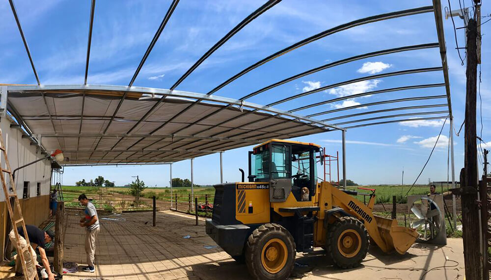 El tinglado tiene 25 metros de largo por 12 metros de ancho. Según explica el productor, “la estructura soporta chapa, aunque por ahora tiene una cobertura mejor que la media sombra”, dice.