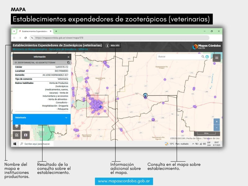 Además, Marcelo Calle, secretario de Ganadería, consideró que la publicación de este mapa georreferenciado de veterinarias“representa otro avance significativo en materia de trazabilidad, transparencia y fortalecimiento de la sanidad animal en la provincia de Córdoba”.