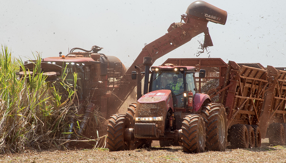 Con un área de 135 mil hectáreas, equivalente a casi 190 mil campos de fútbol, la Usina emplea una flota exclusivamente de Case IH en sus 240 días de cosecha, con camiones que llegan a la molienda cada dos minutos cargados de caña.