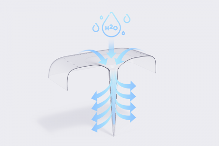 A lo largo de los bordes de la espiga se encuentran unas cavidades que transportan el agua recogida directamente al suelo para una mejor y más rápida absorción, para ayudar a modelar y nutrir las plántulas.