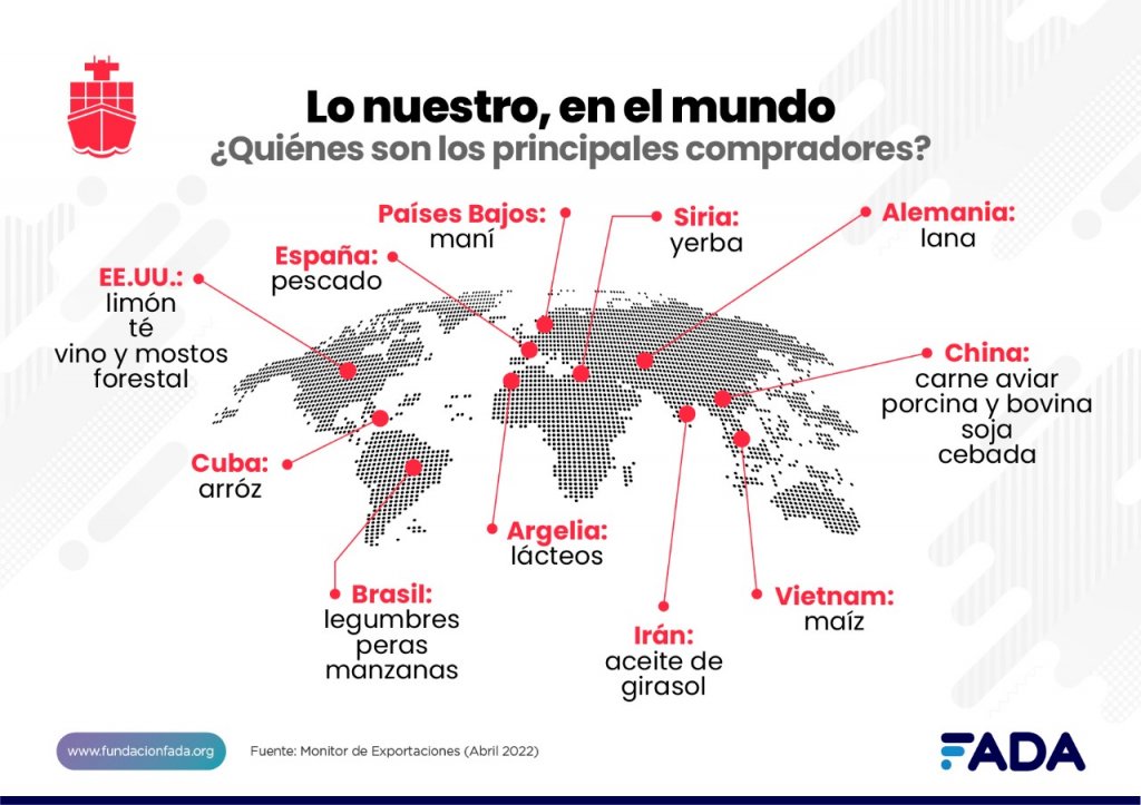 Asimismo, el informe refleja que los alimentos producidos en Argentina llegan a más de 160 países y hay varis rubros en los que somos “campeones” mundiales.