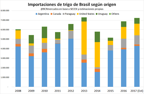 “Como se puede apreciar en el gráfico respectivo, en los últimos años Argentina fue recuperando su papel protagónico como exportador a Brasil. Ante su menor producción de trigo, se intuye que las compras brasileñas serán más activas para satisfacer ese déficit de mercadería, traccionando así a los precios locales”, advierte el informe.